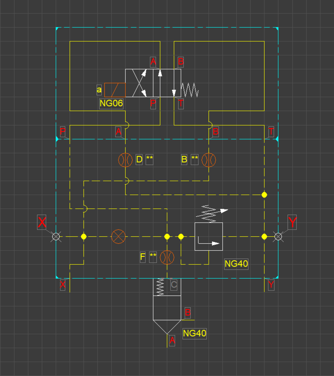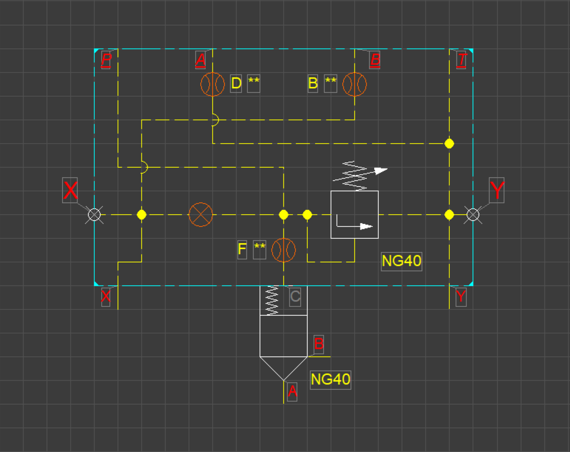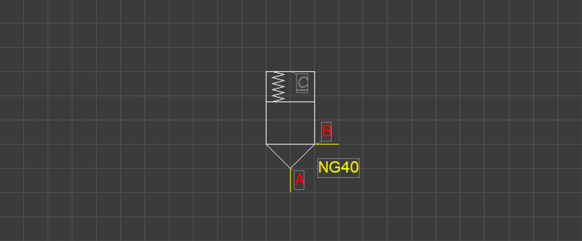 - Go to the TAB online-> components-> Manufacturer-> BoschRexroth-> Control valves - Slip-In Cartridge-> Pressure control-> Covers pressure relief -> NS40 and select LFA040DBW. Drag the inserted component with the letter C on the other letter c and the components will be joined.