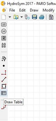- HydroSym makes it easy to add a table to your schematic. To insert a table, click the Draw Table button in the Drawing toolbar. Left-click with your mouse button on the desired position in your schematic to place the table. Tables in HydroSym always have an initial size of 2x3 cells.