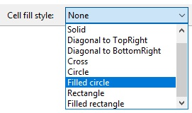- Select the option “Cell fill style” in the top right corner of the screen. The cell in which the desired symbol needs to be put in has to be selected before this option is chosen. Cell A has been selected in this example and the option filled circle is chosen. The cell will then look like the following:
