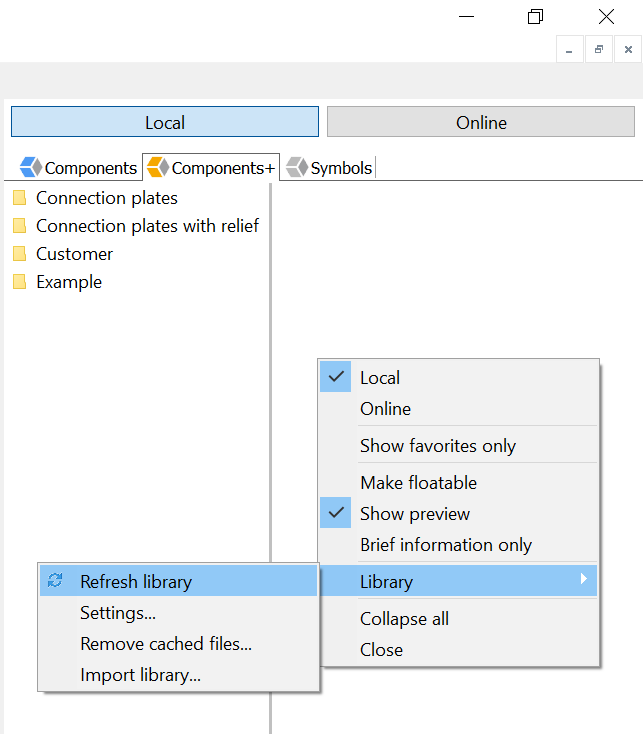 - Browse to …\Libraries\Components Plus (or where your library is saved) and save the file here. If you want you also can create subfolders.Select the Components + tab in the library and refresh the library. Use your right mouse button to refresh the library.